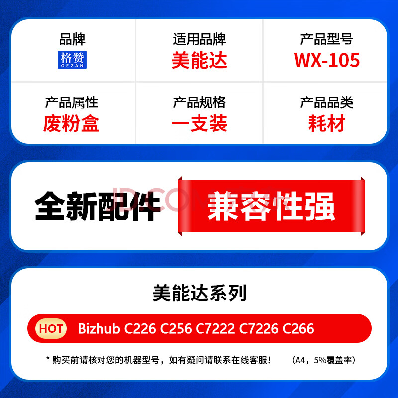 商品相册:格赞WX-105废粉盒 适用柯尼卡美能达C226 C266 C256 C227 C287 C367 C7222 C7226 废粉回收盒 废粉收集仓第