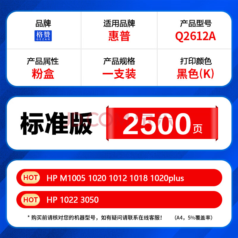 商品相册:格赞Q2612A硒鼓12a适用惠普m1005硒鼓hp 1020 1020plus 1010 1012 1015碳粉1018硒鼓佳能lbp2900+打印机墨盒粉盒第