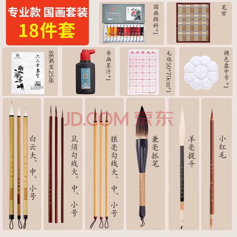 商品相册:六品堂国画毛笔套装 兼毫羊毫勾线白云毛笔 学生国画工笔画书法颜料画笔第