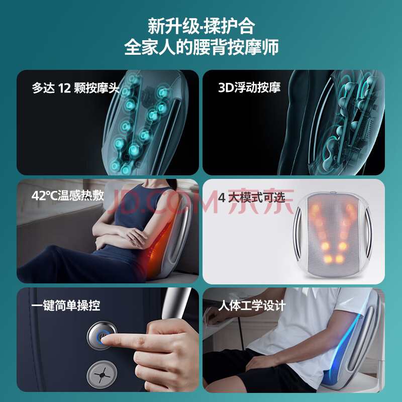 商品相册:飞利浦(PHILIPS)腰部按摩器 腰背按摩仪多功能腰椎揉捏热敷腰肌劳损按摩靠垫靠枕 5101B灰 生日礼物节日礼品送朋友第