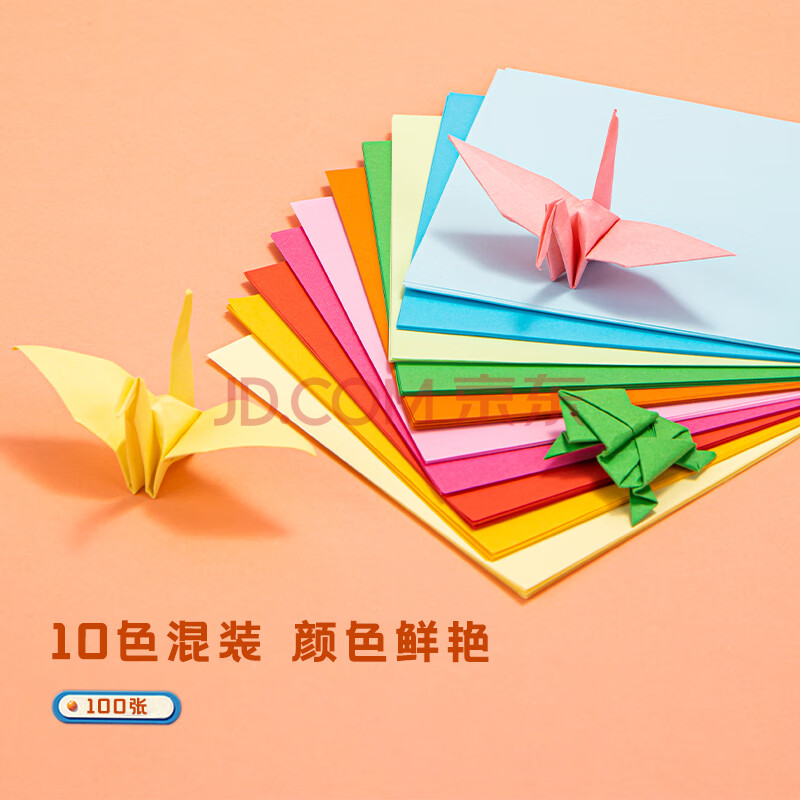 商品相册:得力(deli)100张12*12cm彩色折纸 手工折纸剪纸彩纸绘画美术软卡纸DIY手绘纸创意儿童生日礼物开学文具第1张/共8