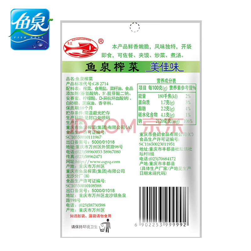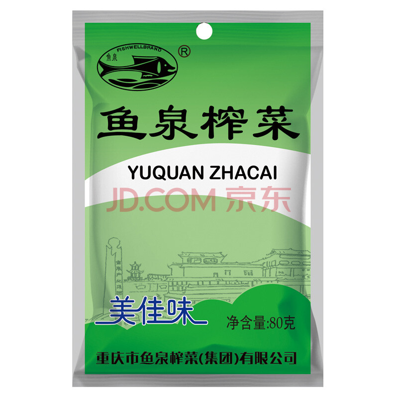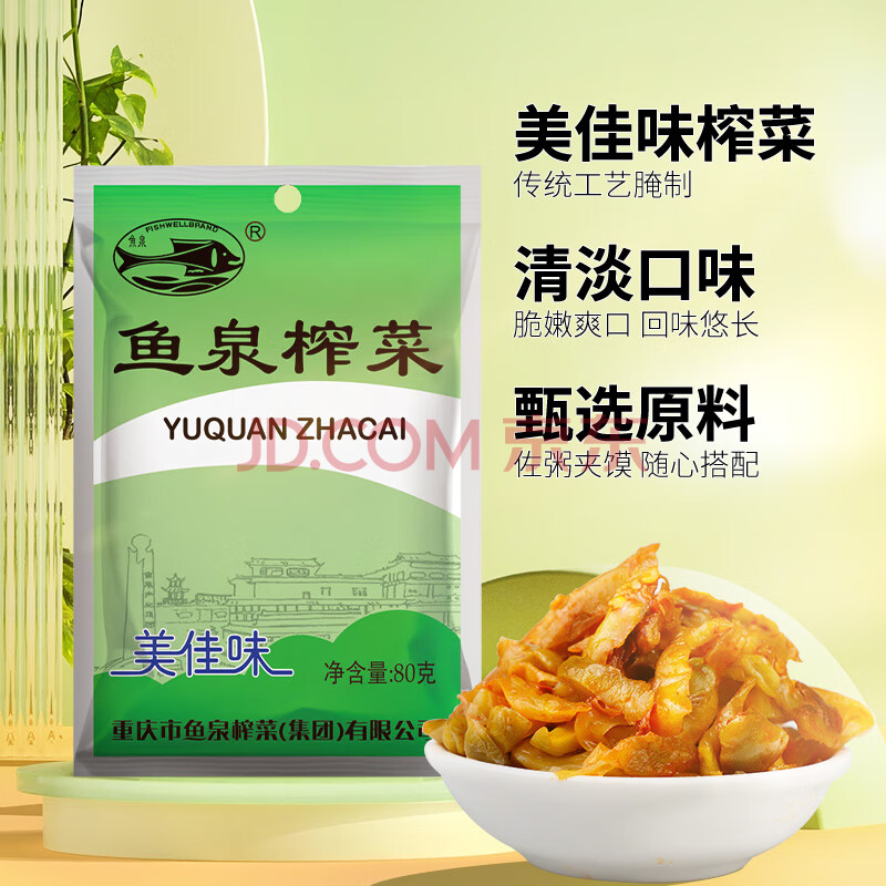 商品相册:鱼泉榨菜 下饭菜 清淡美佳味榨菜丝 80g*8袋 重庆特产 早餐小菜第