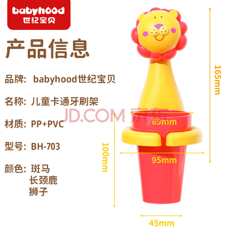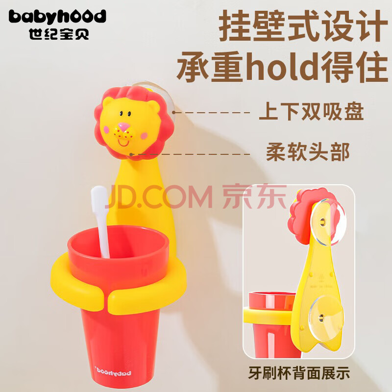 商品相册:世纪宝贝(babyhood)儿童卡通牙刷杯架 加厚防摔漱口杯子 壁挂式宝宝水杯 703狮子第1张/共7