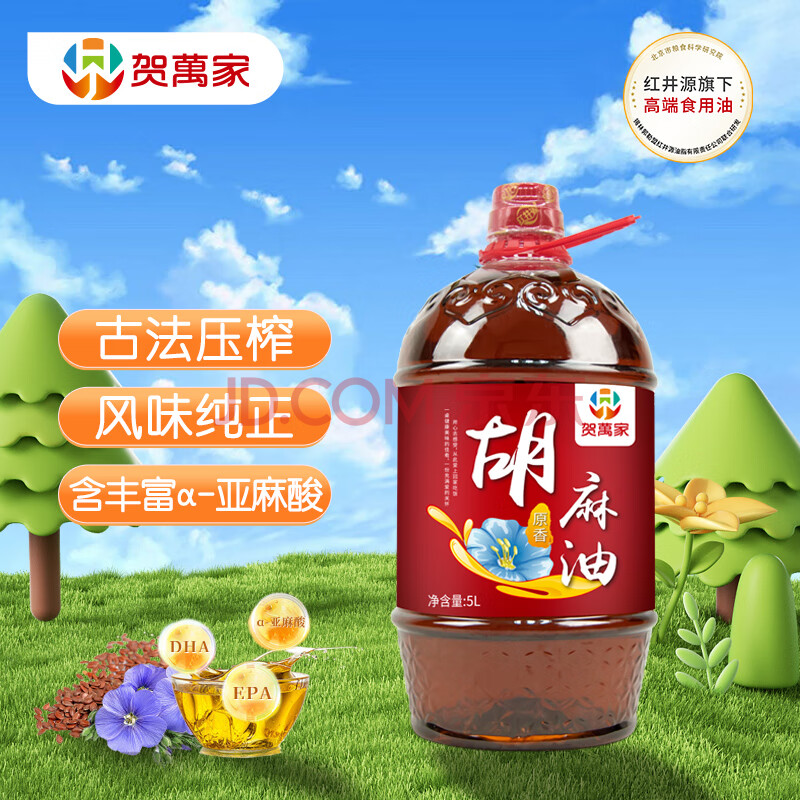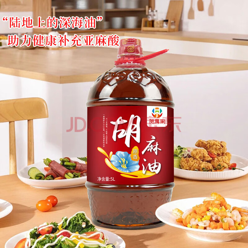 商品相册:贺萬家胡麻油5L内蒙特产胡麻油月子油热炒二级亚麻籽油食用油团购第