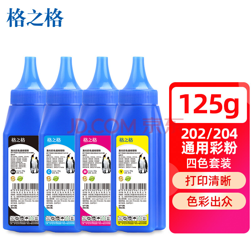 商品相册:格之格cf500a cf510a碳粉适用hp 202a 204a 惠普M281FDW M254DW M254NW M281FDN打印机硒鼓 四色套装通用碳粉第