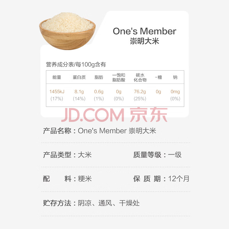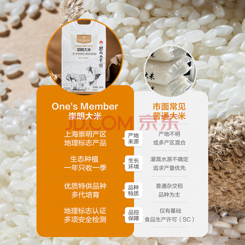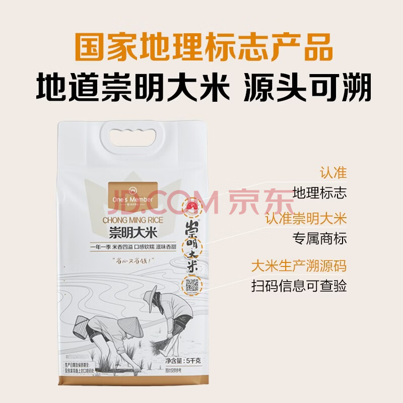 商品相册:1号会员店 上海崇明大米5kg可溯源崇明岛大米南粳46软香米真空锁鲜当季新米第1张/共8