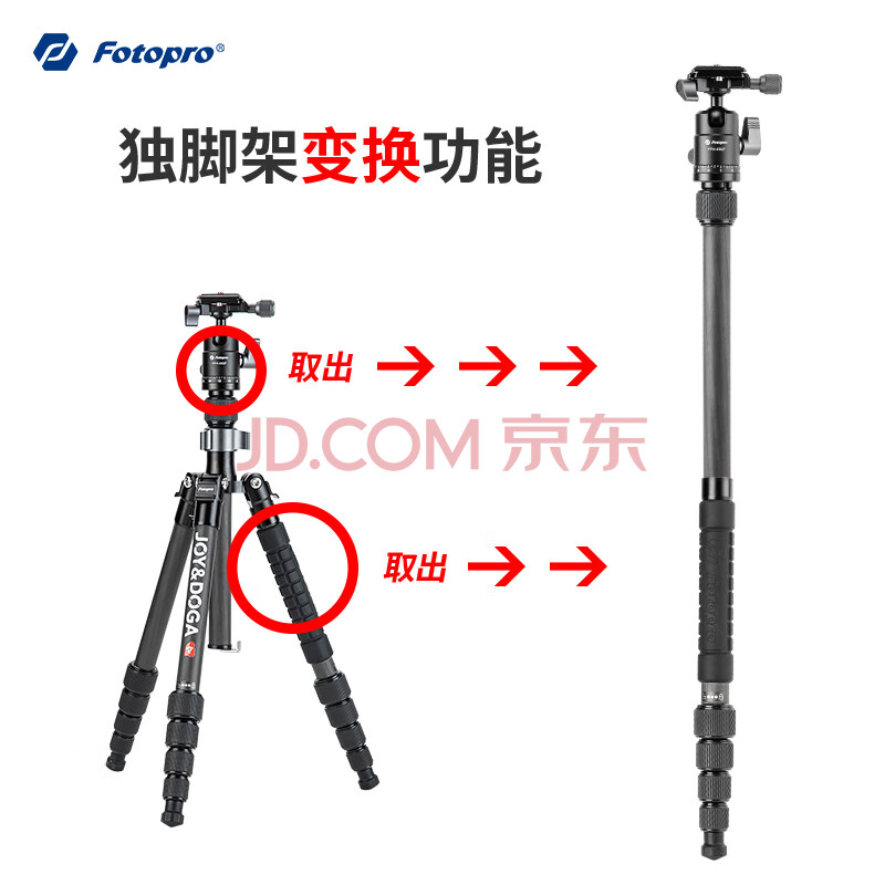 商品相册:富图宝(Fotopro)X-4CN&Joy联名款 碳纤维双全景云台数码相机微单摄影三脚支架 银色 送手机夹第