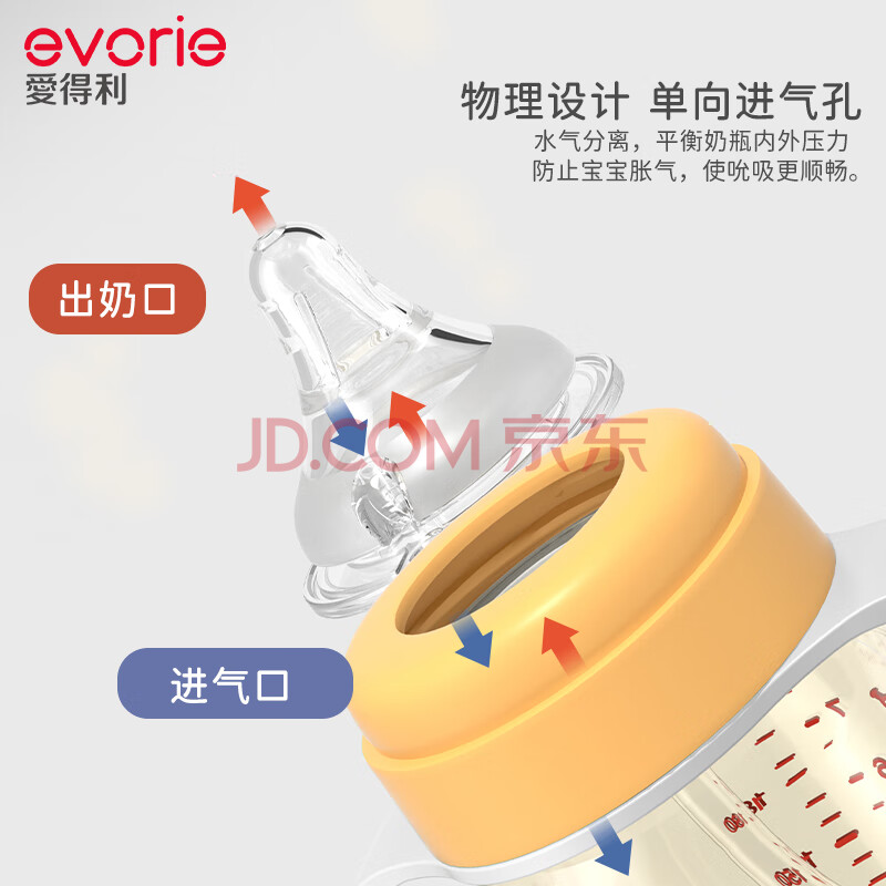 商品相册:爱得利(evorie) 婴儿奶瓶6个月以上 宽口径带手柄带重力球PPSU奶瓶 240ml橙第
