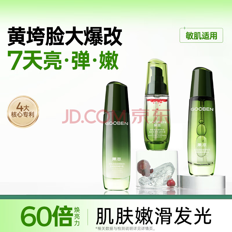 商品相册:果本鳄梨多肽焕亮水乳精华液3件套 紧致提亮护肤品套装生日礼物第