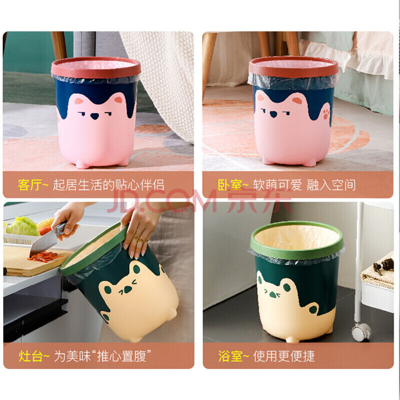 商品相册:梦庭 创意垃圾桶压圈式10L家用办公室大号卡通款 客厅纸篓大容量 绿色第