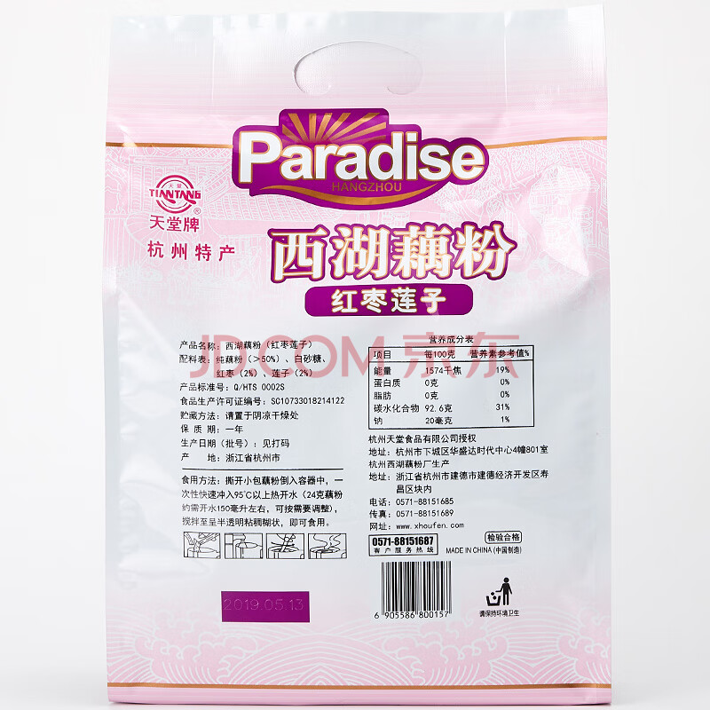 商品相册:天堂牌西湖藕粉杭州特产红枣莲子速溶藕粉即冲即食早餐代餐粉480g袋第