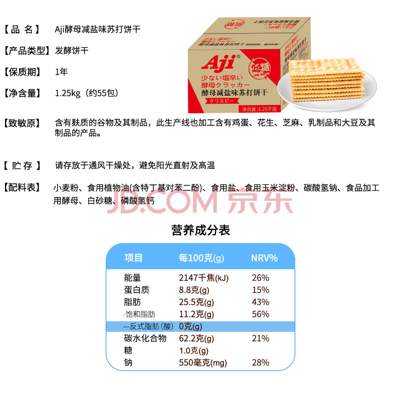 商品相册:Aji低糖酵母减盐苏打饼干2.5斤咸味易消化解馋休闲零食早餐送礼礼盒第