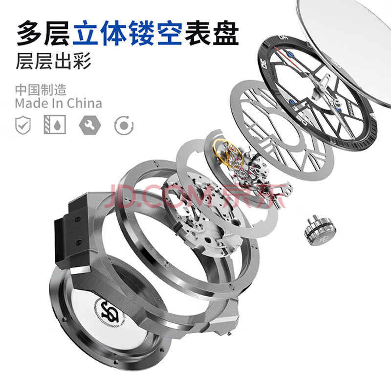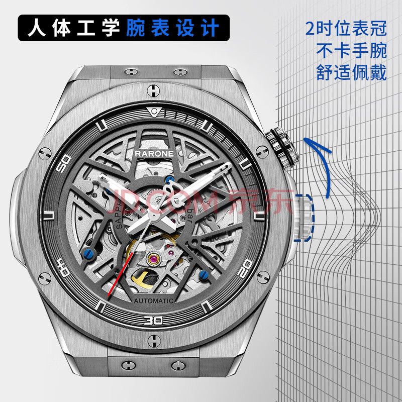 商品相册:雷诺(RARONE)解构派双子星RebelX男士机械手表钢带全自动腕表 生日礼物送男友第