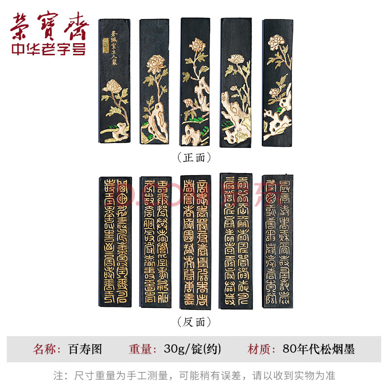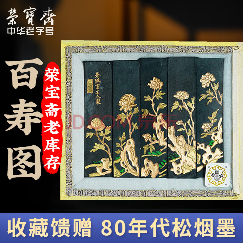 商品相册:荣宝斋 墨锭松烟 80年代老墨传统手作墨条墨块徽墨 文房四宝毛笔书法国画收藏礼品盒 百寿图套墨第