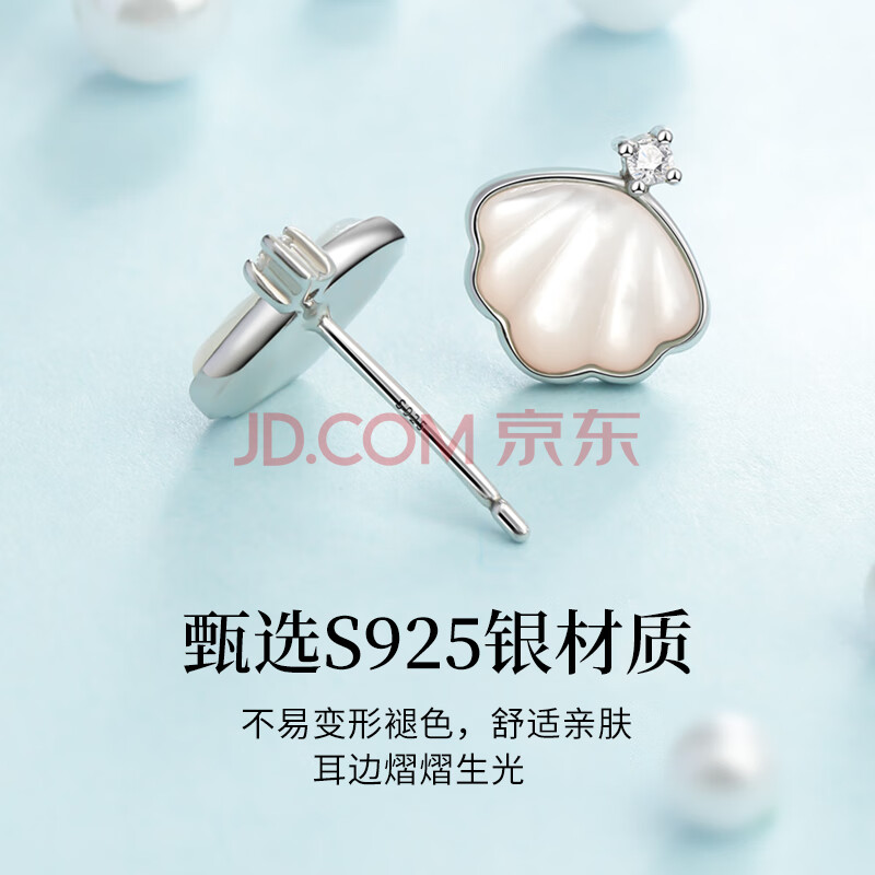 商品相册:曼禾(MANHE)S925银耳钉女士一贝子耳饰耳环女2026年新款生日礼物送女生女朋友第