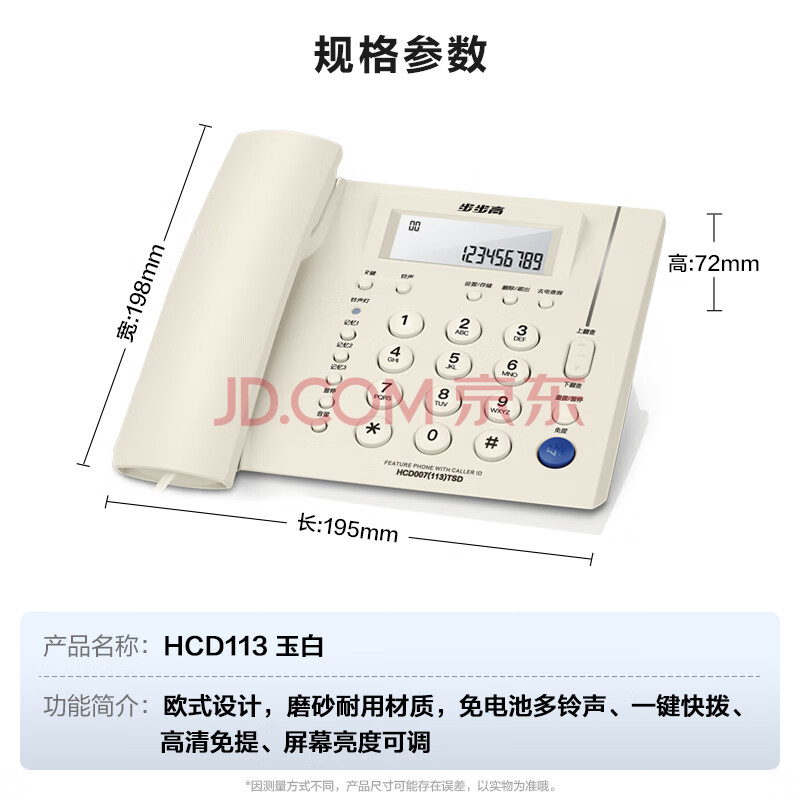 商品相册:步步高(BBK)电话机座机 固定电话 办公家用 免电池 一键快拨 HCD113玉白第
