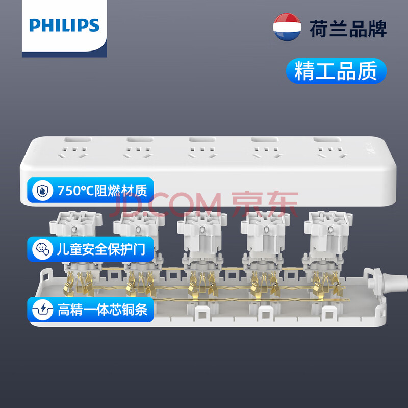 商品相册:飞利浦(PHILIPS)安全插座 5位分控独立开关1.8米 大孔位间距 插排/插线板/排插/接线板/拖线板第