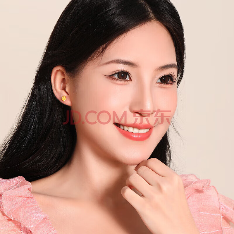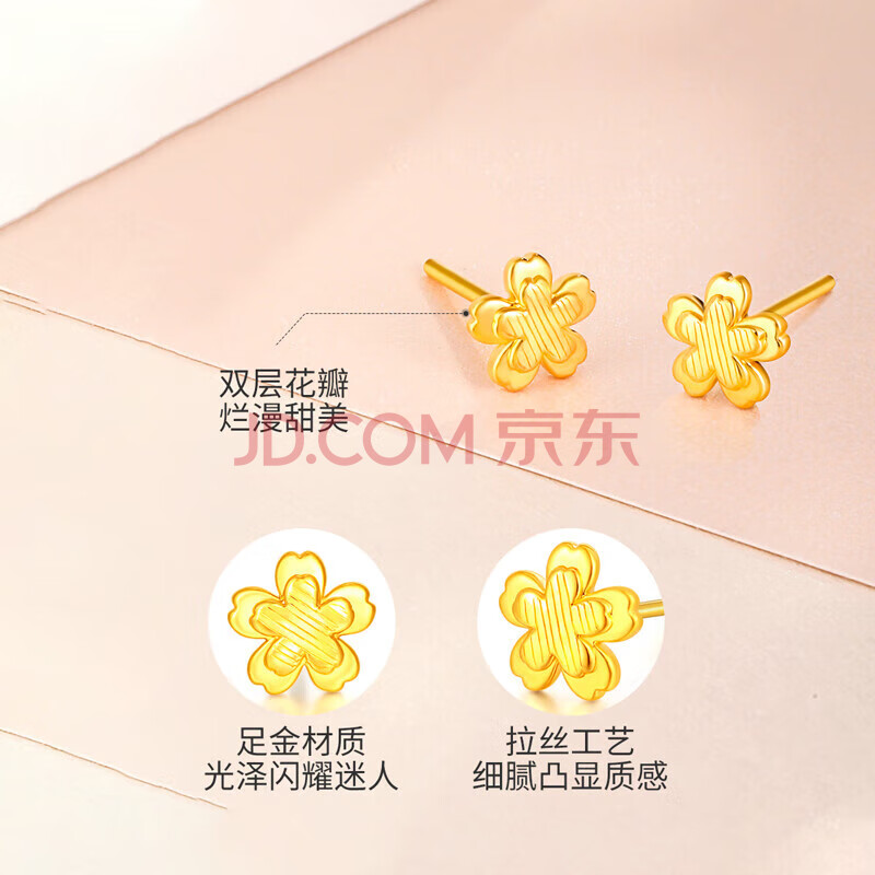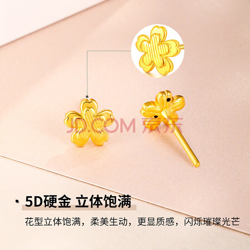 商品相册:梦金园黄金耳钉樱花足金耳环5D硬金送老婆第