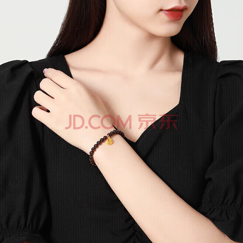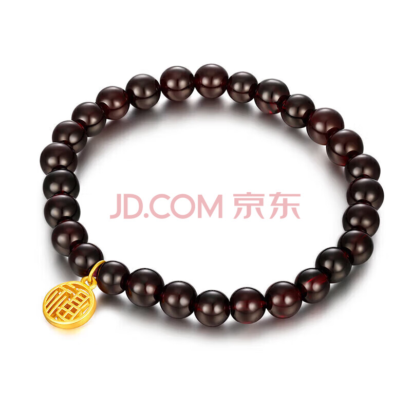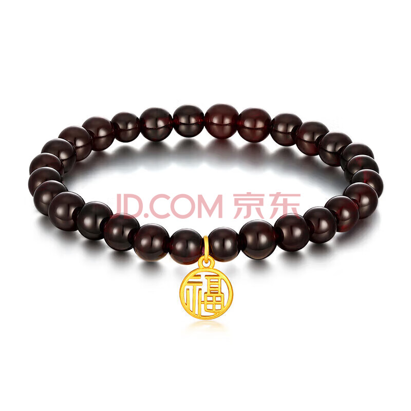 商品相册:梦金园 黄金转运珠5D硬金福牌挂坠玛瑙石榴石珍珠手链女款礼物第