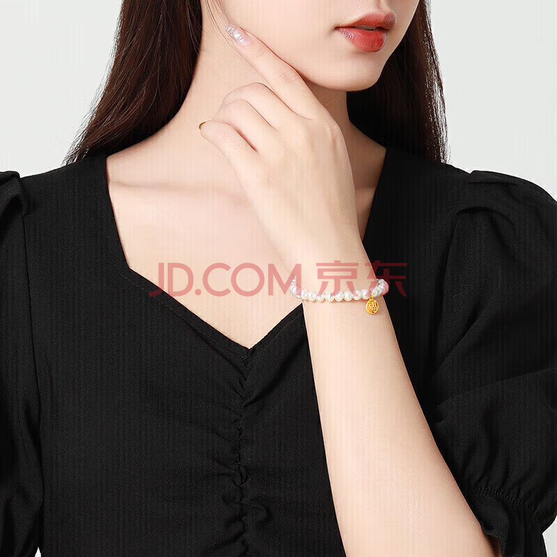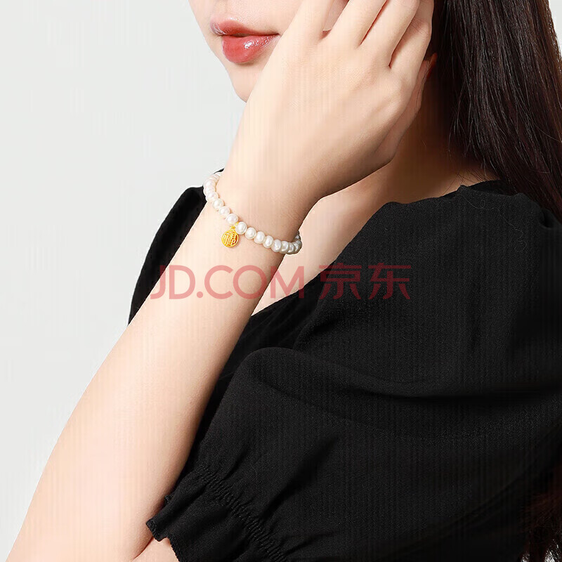 商品相册:梦金园黄金吊坠5D硬金福牌挂坠玛瑙石榴石珍珠手链第
