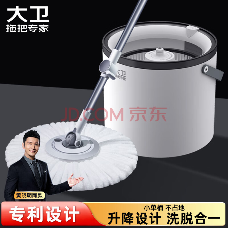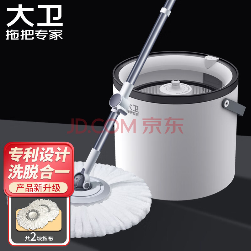 商品相册:大卫旋转拖把35cm杆伸缩99-127cm 2头加厚拖布 N11单桶洗脱合一不占地第