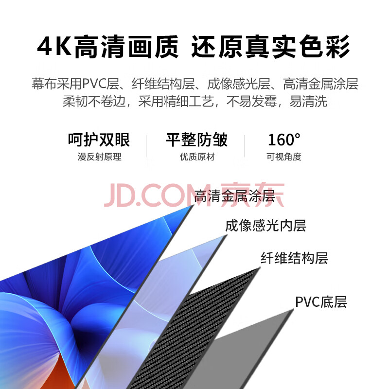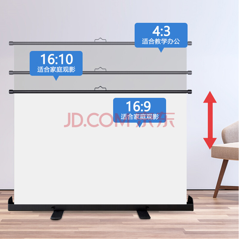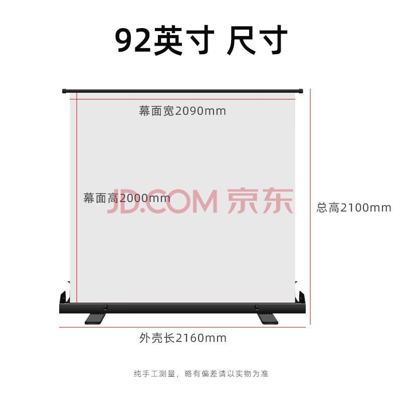 商品相册:鲸米(JINGMI)投影幕布92英寸16:9地拉幕布全面屏手动地升幕布G1白玻纤家用办公户外便携移动投影仪屏幕第