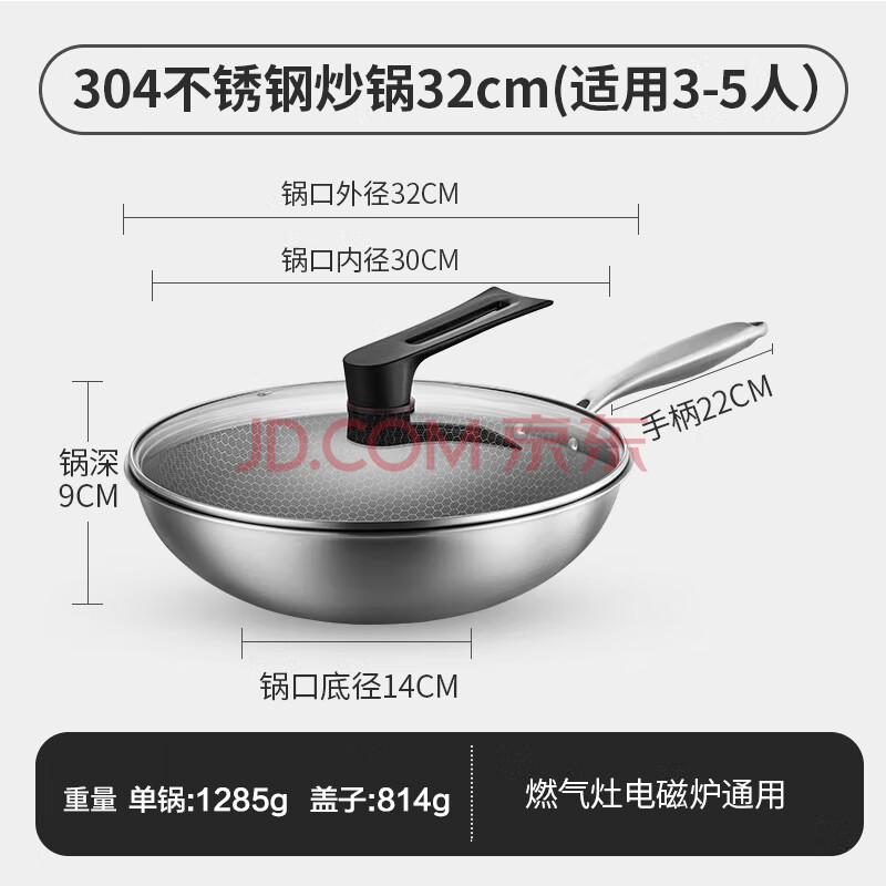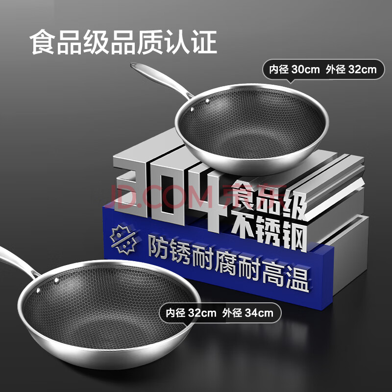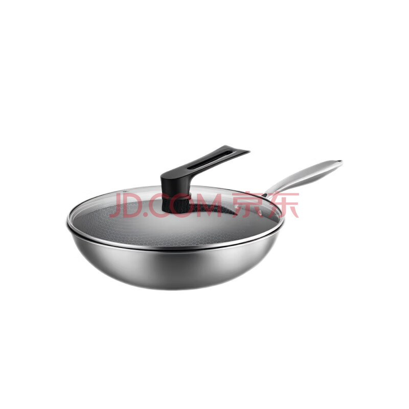 商品相册:京东京造 炒锅 304不锈钢炒菜平底不粘煎锅电磁炉燃气灶【可立盖】30cm第