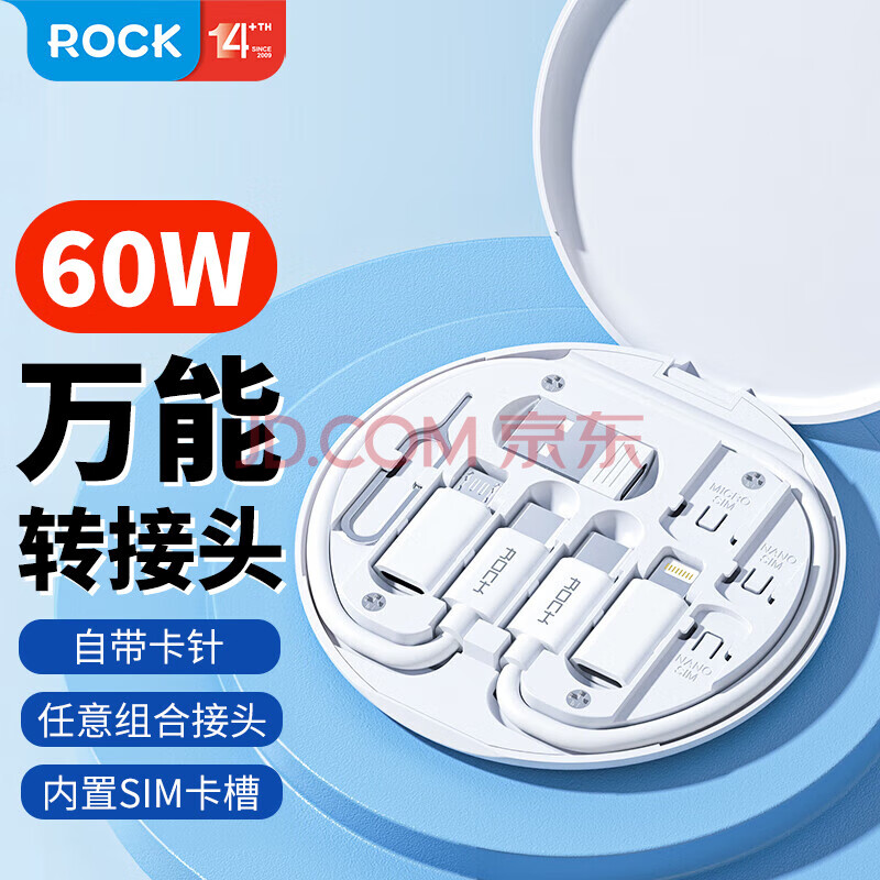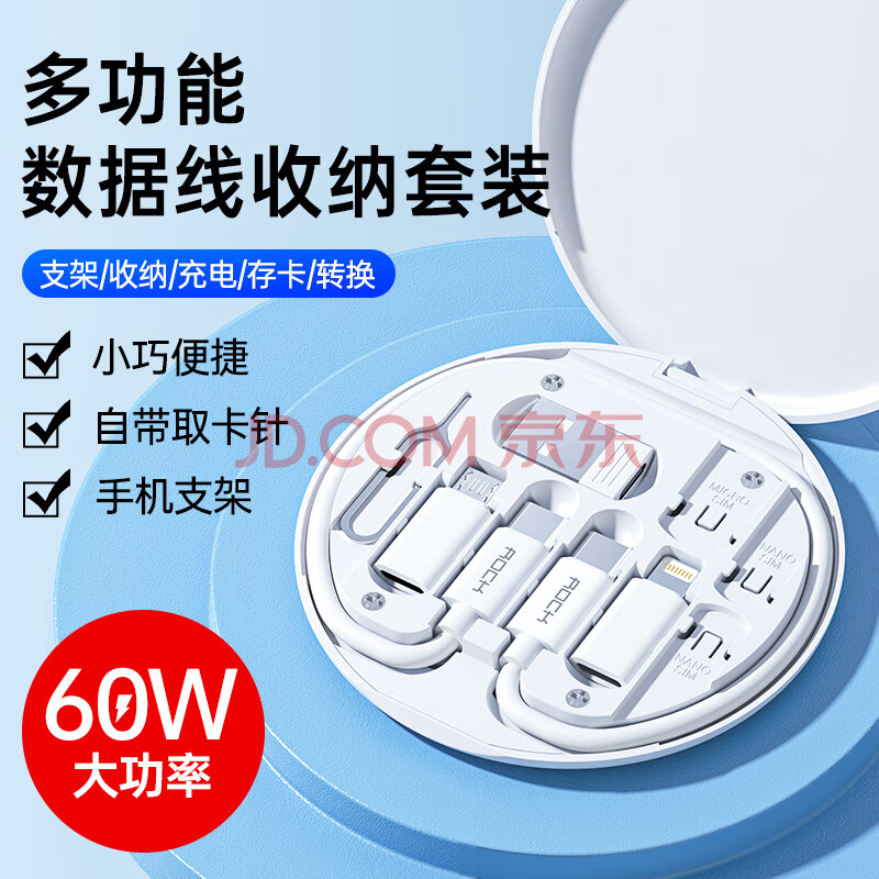 商品相册:ROCK【60W快充】多功能充电线三合一数据线OTG转接头苹果安卓type-c转usb多接口转换头传输便携收纳盒第