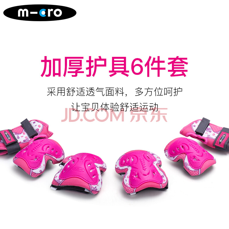商品相册:micro迈古儿童护具轮滑滑板平衡自行车头盔micro防摔护手肘膝 X8M粉L码第