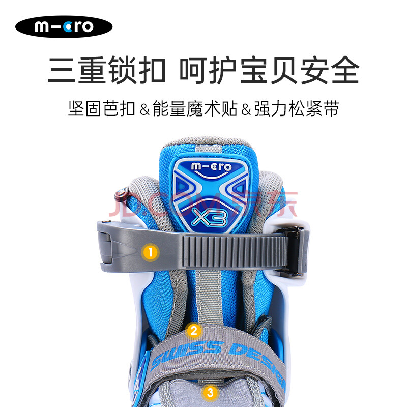 商品相册:micro迈古轮滑鞋儿童溜冰男女micro直排旱冰中小学适用 X3蓝色套餐L码第