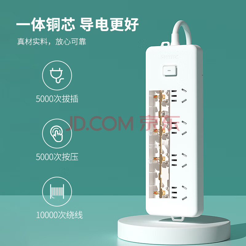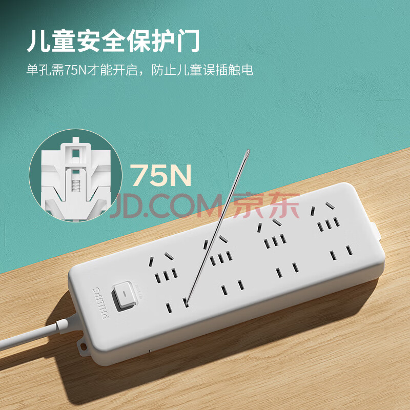 商品相册:飞利浦(PHILIPS)8位组合孔2.8米 儿童保护门 插线板/插排/排插/接线板/拖线板第
