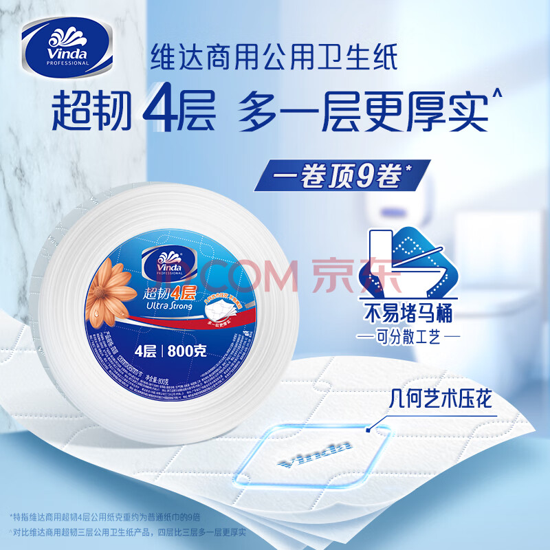 商品相册:维达有芯大卷纸4层800克*6卷 大盘纸超韧加厚商用厕纸 整箱销售VS4882第