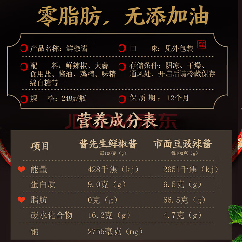 商品相册:酱先生鲜椒酱248g 蒜蓉0脂肪辣椒酱剁椒拌饭酱无脂肪酱料火锅蘸料第