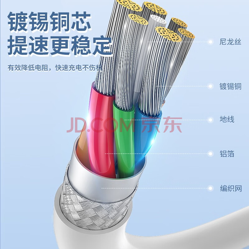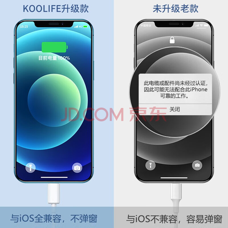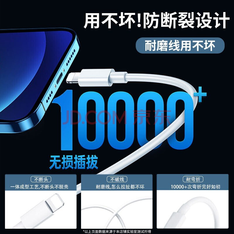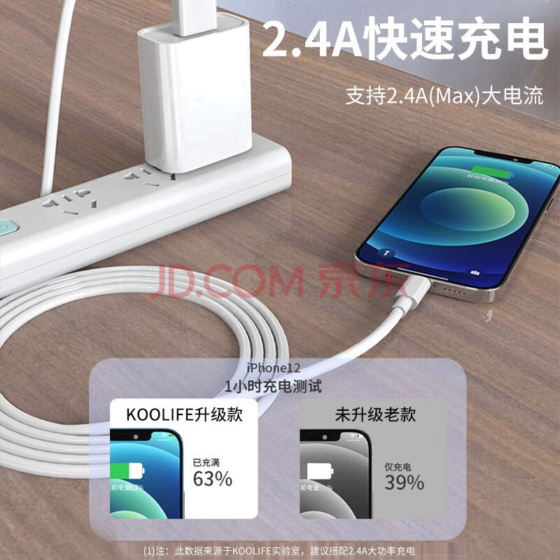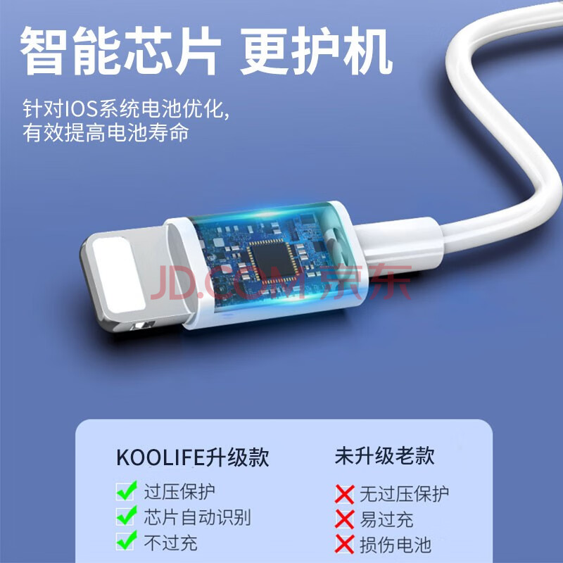 商品相册:KOOLIFE 苹果数据线快充线1.5米适用iPhone14/13/12Pro Max/11/Xs/XR/8手机充电线iPadPro/Air平板-白色 第