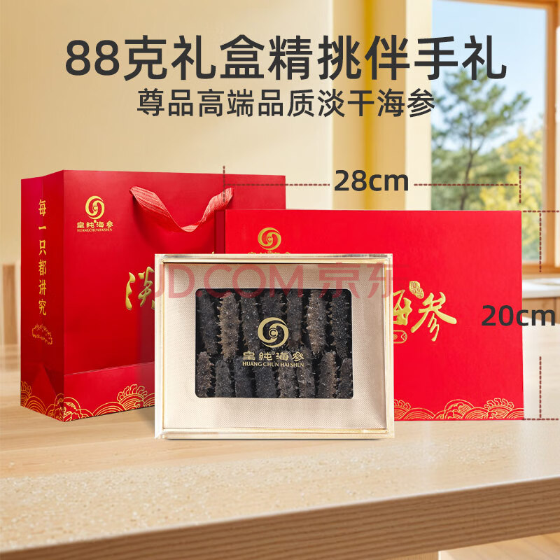 商品相册:皇纯尊品 威海淡干海参干货 88g12-18只 底播刺参 特产礼盒 海鲜特产第