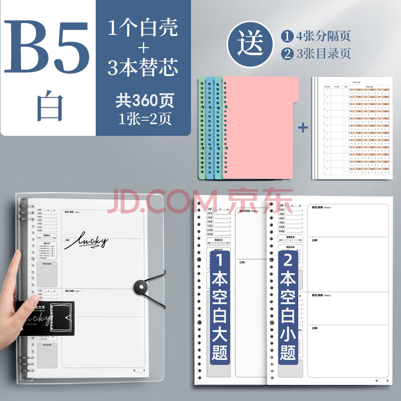 商品相册:金值B5/180张错题本初高中生专用活页笔记本子 小学数学英语改错纠错本集错题整理神器 开学季必备用品第