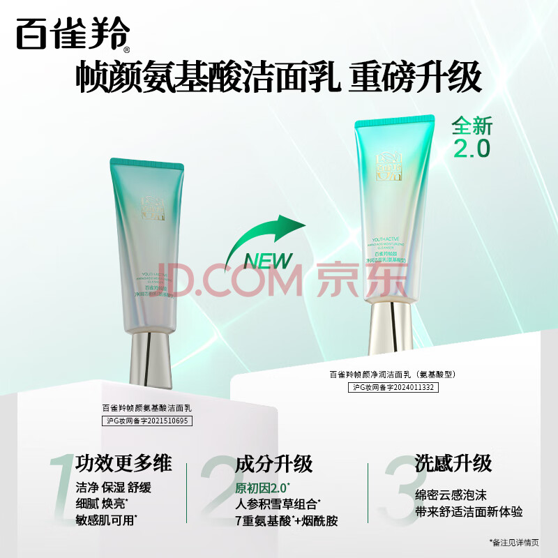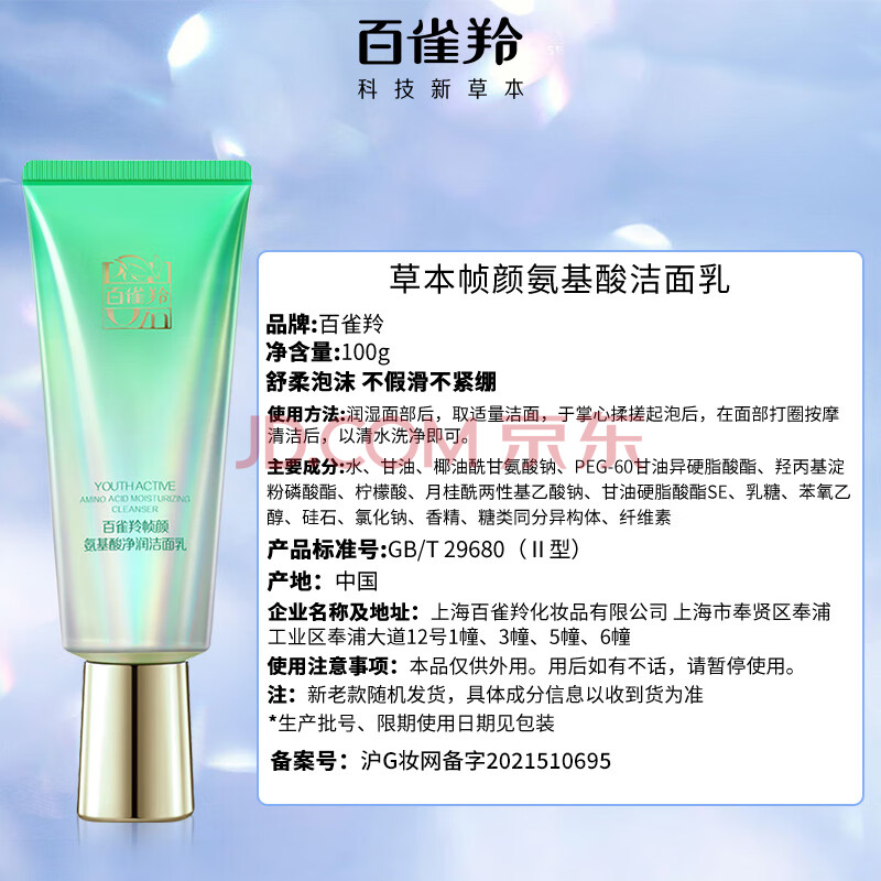 商品相册:百雀羚 洗面奶草本帧颜氨基酸净润洁面乳100g淡纹修护品质国货生日礼物第