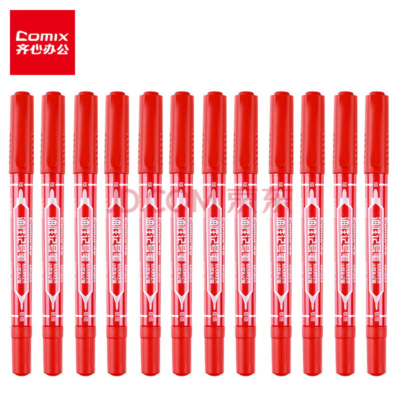商品相册:齐心(Comix)速干防水小双头油性物流笔/记号笔 工具 红色12支装 MK804第1张/共9
