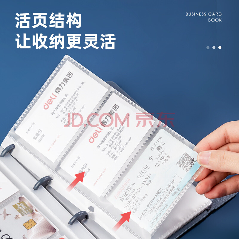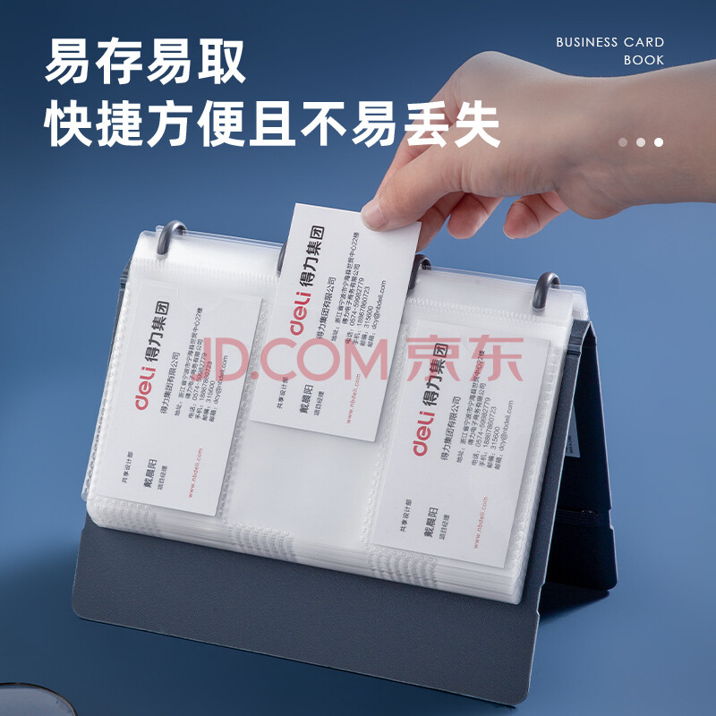 商品相册:得力(deli)90袋(180枚)活页带捆绳名片册 男女商务名片夹 蓝色 5778第