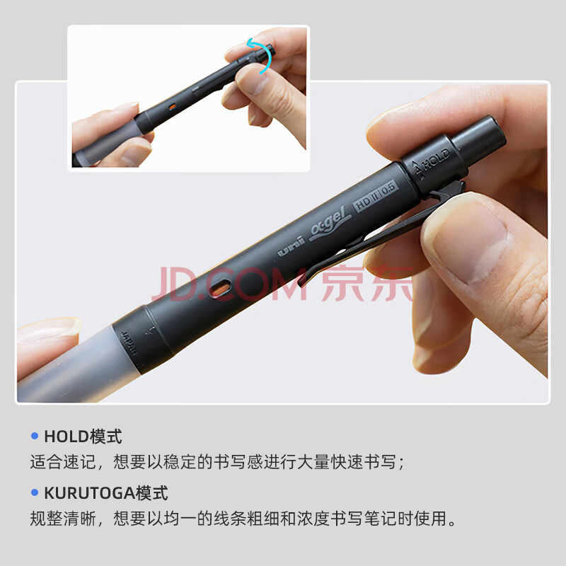 商品相册:uni三菱 KURUTOGA自动铅笔 0.5mm双模式旋转软胶笔握不断铅自动铅笔M5-1009GG 黑色 单支装第