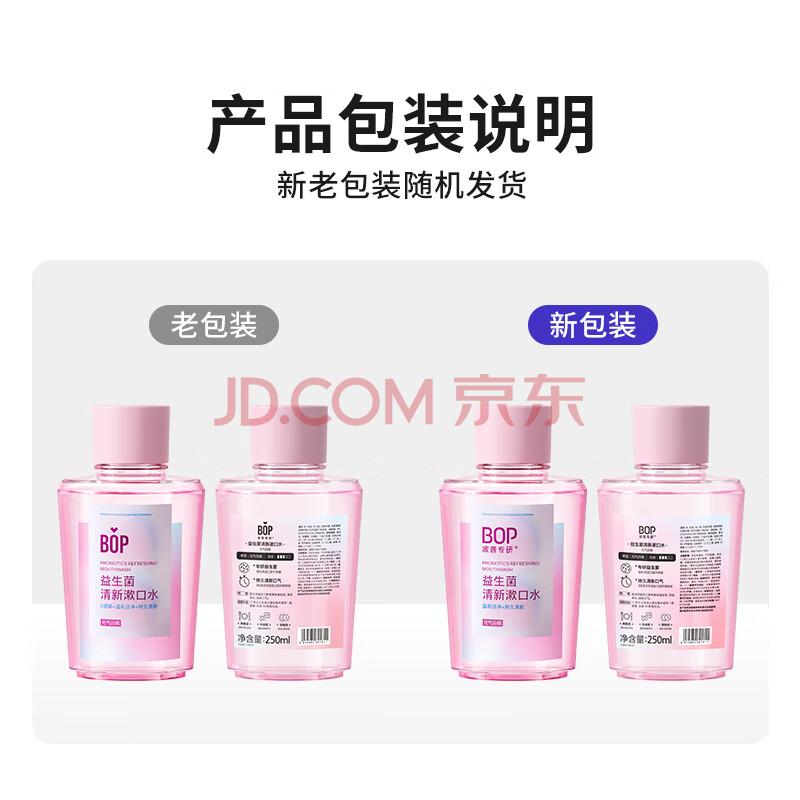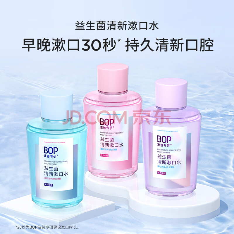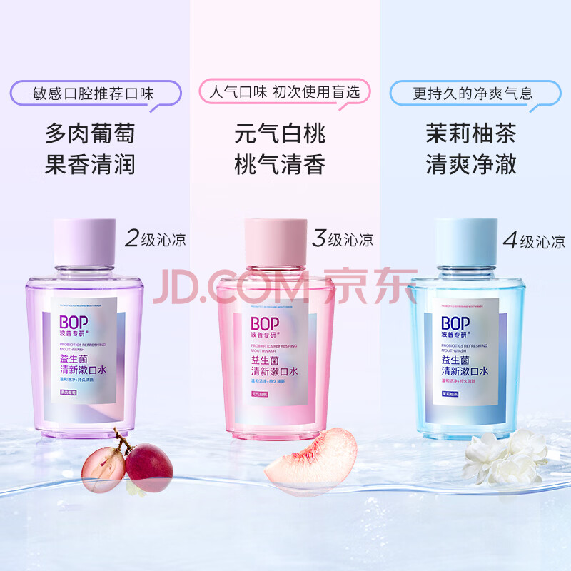 商品相册:波普专研(bop)【迪丽热巴同款】益生菌漱口水口腔清洁护理持久元气白桃250ml/瓶第