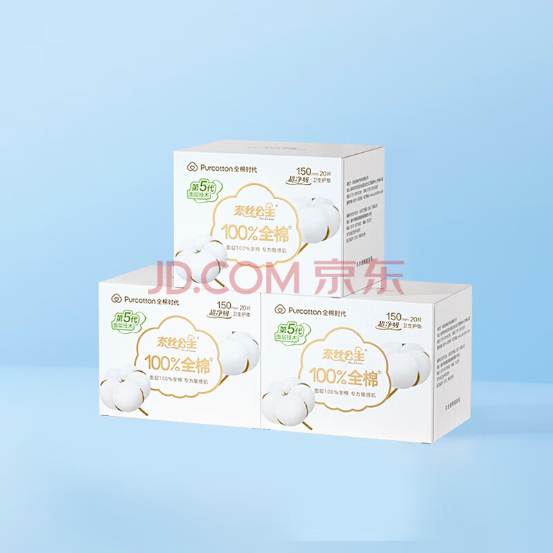 商品相册:全棉时代 奈丝公主超净吸系列亲肤超薄护垫卫生巾150MM 20片*4包装 共80片第