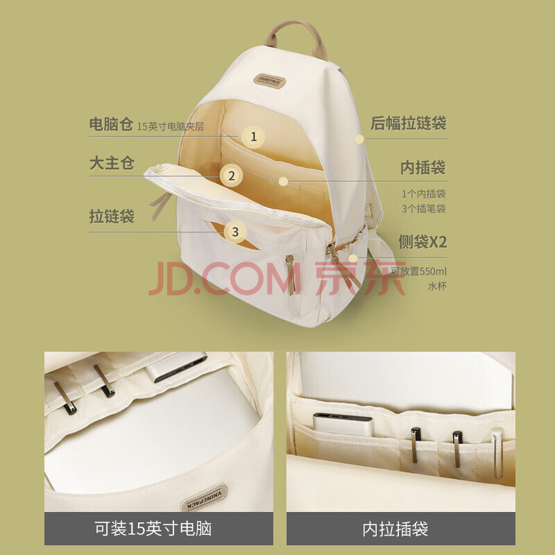商品相册:第九城(V.NINE)初高中生双肩书包4-6年级男女生14/15英寸笔记本电脑包大学生背包第