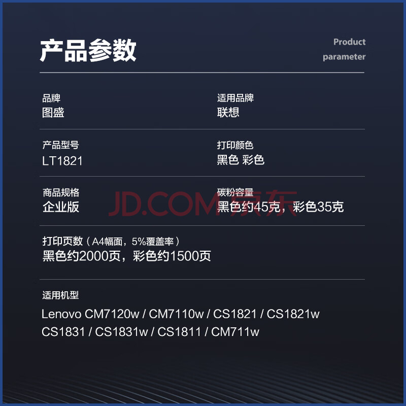 商品相册:图盛LT1821粉盒适用联想CS1821 CS1821W CS1831 CS1831W打印机硒鼓 Lenovo CM7120W CM7110W粉盒墨盒碳粉四色套装第