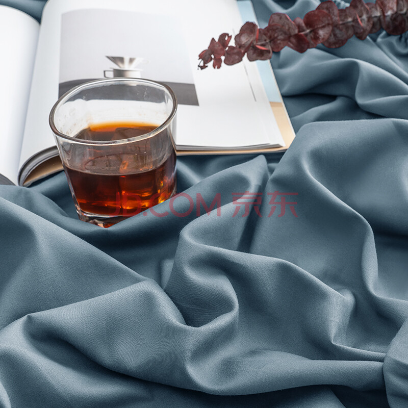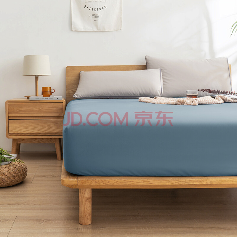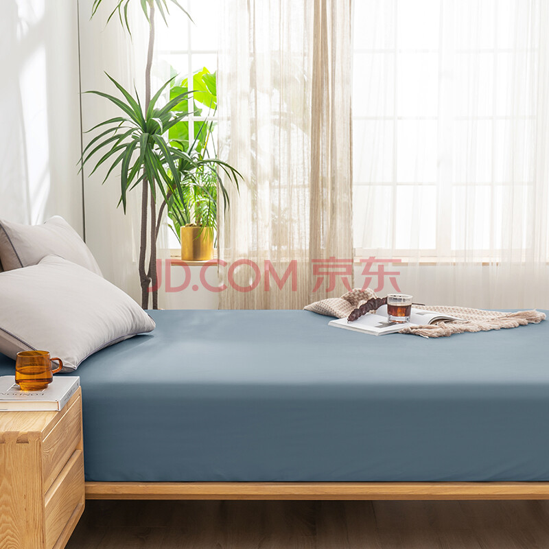 商品相册:京东京造 60支长绒棉磨毛床笠 A类加厚纯棉床罩床垫保护套 1.5米床 灰蓝第