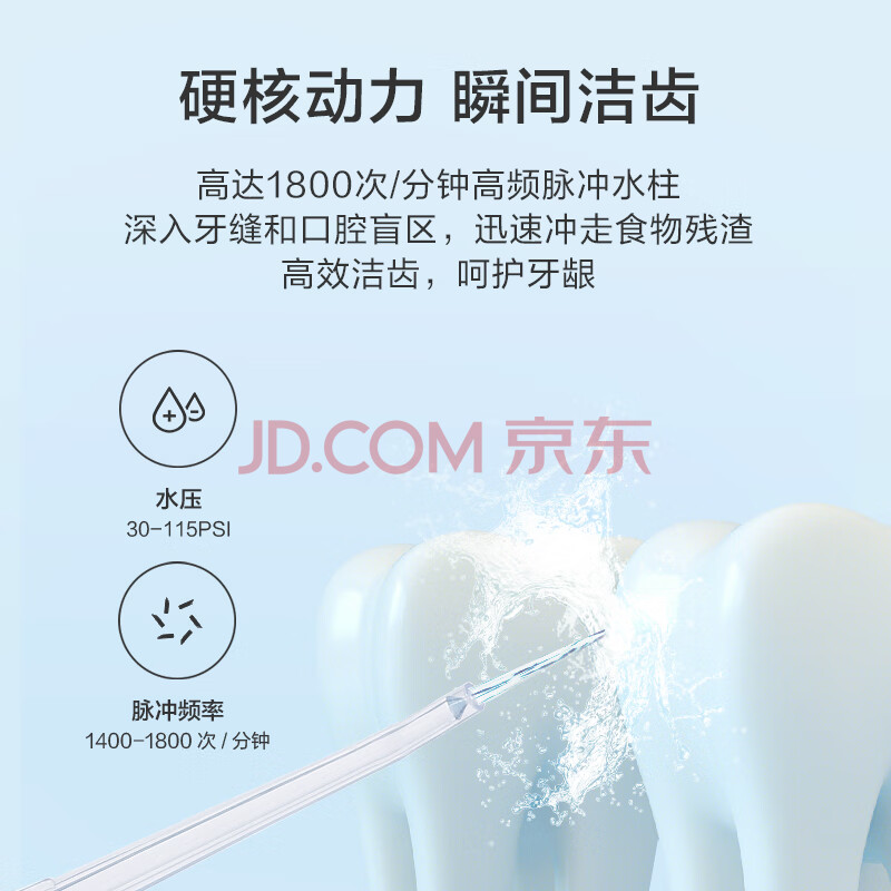 商品相册:京东京造冲牙器便携式6支喷嘴300ml大水箱洗牙器洁牙器水牙线牙齿冲洗器正畸预防牙结石生日礼物送男女朋友第