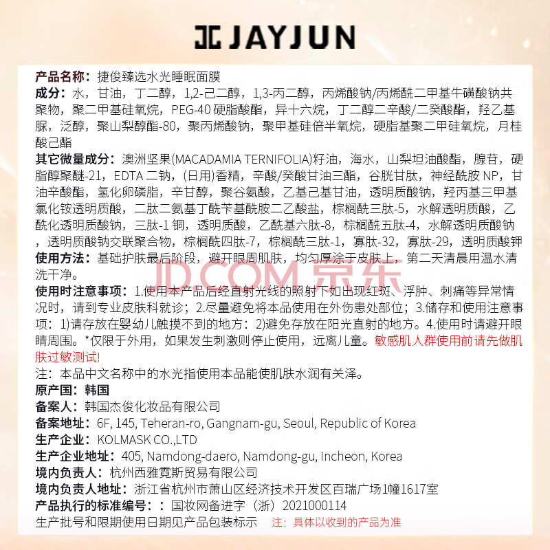 商品相册:JAYJUN水光睡眠面膜补水深层保湿男女夜间涂抹免洗泥膜30支 妇女节礼物第