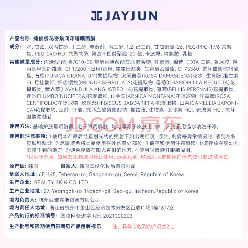 商品相册:JAYJUN樱花睡眠面膜补水保湿提亮 男女夜间涂抹式免洗泥膜妇女节礼物第
