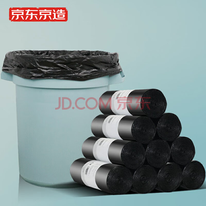 商品相册:京东京造 物业垃圾袋45*55cm*150只 10μ1丝 黑色酒店物业商用加厚袋第