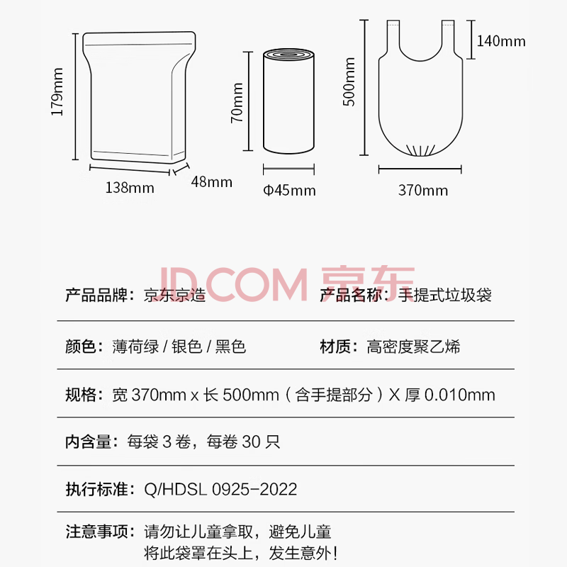 商品相册:京东京造 背心式垃圾袋37*50cm*90只 10μ1丝 手提厨房家用加厚袋小号第